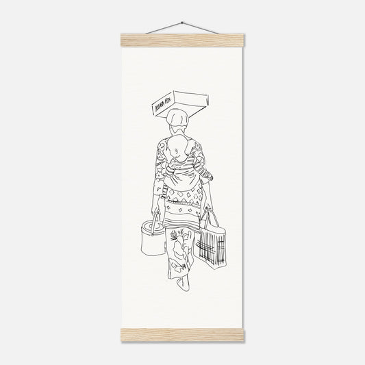 African Lady mit oder ohne Text | Poster aus mattem Papier in Museumsqualität mit Leisten 20x50 cm